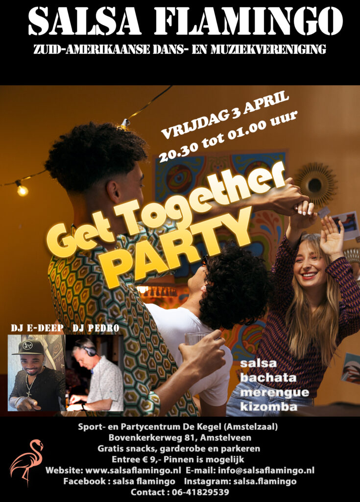 GET TOGETHER PARTY VRIJDAG 3 APRIL MET DJ E-DEEP EN DJ PEDRO